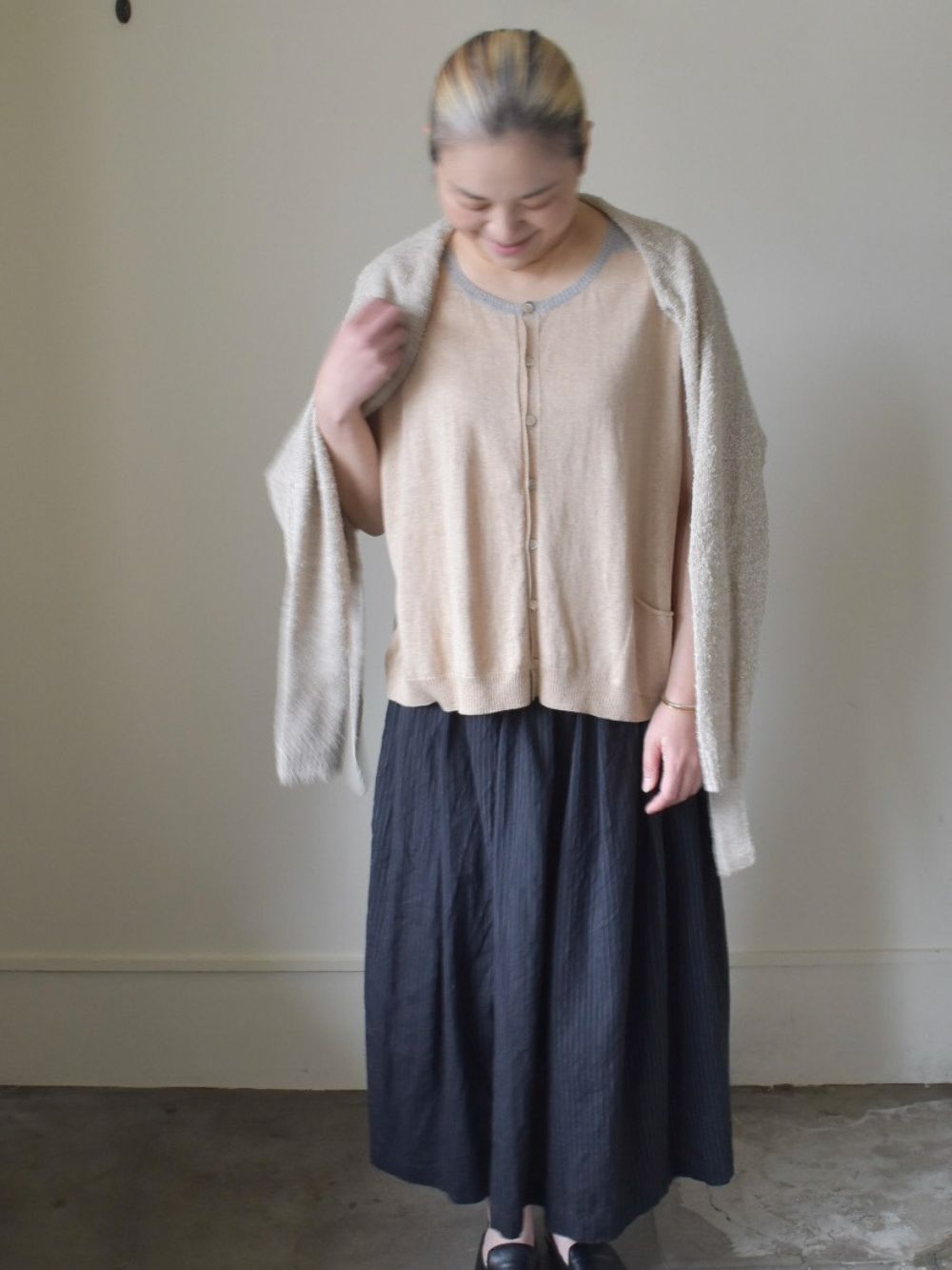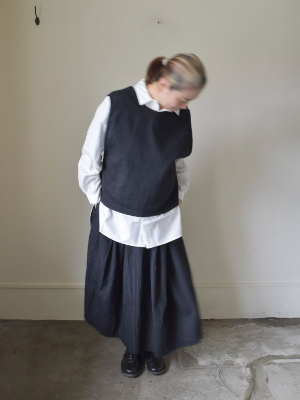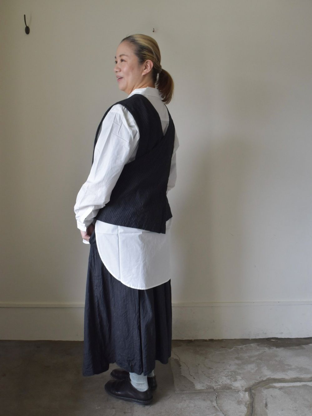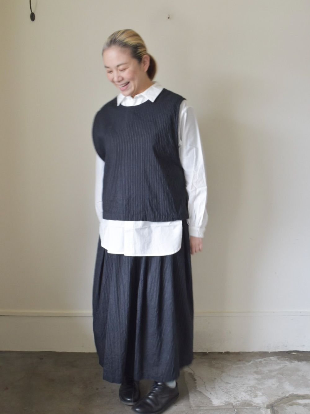 これから本格的に暖かくなってきた暁に、柔らか軽やかな生地でのジレとスカート。